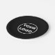 Host a branded company event with paper plates boldly featuring your business logo on a black background to increase your marketing reach. Replace the sample logo with your own in the sidebar. Your logo can be circular, square, or another shape. This design will work best with white or light coloured logos which look good on a dark or black background.