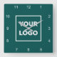 Custom Business Logo on Minimal Teal Background Square Wall Clock