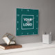 Create your own minimal square wall clock for your business featuring your logo on a teal background with simple white numbers around the edge. Replace the sample company logo with your own in the sidebar. Your logo can be a circle, square, or another shape. White or light coloured logos will work best with this design. Click to customize further if you need to adjust the size of your logo with the scale buttons or to change the background colour.
