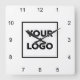 Create your own minimal square wall clock for your business featuring your logo on a white background with simple black numbers around the edge. Replace the sample company logo with your own in the sidebar. Your logo can be a circle, square, or another shape, and in colour or black and white. Click to customize further if you need to adjust the size of your logo with the scale buttons.