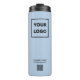 Advertise with your business logo, company name, website, and a customizable QR code on a light blue branded thermal tumbler. Replace the sample logo, text, and website URL with your own in the sidebar. Your brand symbol can be any shape and any colour. If you want the background colour to show through your logo, upload a version of your logo with a transparent background. This is eco friendly swag your employees, customers and clients will keep and appreciate!