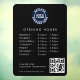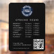 Enhance your customer engagement with our innovative custom opening hours window cling. This compact powerhouse combines your company's logo with a dynamic QR code, creating an interactive experience that seamlessly bridges the physical and digital worlds. Add a different background colour to match your brand's colour scheme by using our "Design Tool" nested under the "Personalize" button.