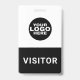 Custom Business Logo Visitor Pass ID Badge. Modern black and white design with easy to read font. Personalize this visitor badge template with your company logo, easily change text and colors in this design.