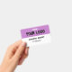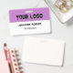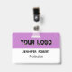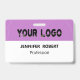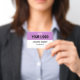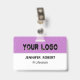 Stylish white and purple business badge with a personalized logo and text The flexible design is simple to edit and can be customized with your business's logo. To create a genuinely unique and expert look for your own business. There is no minimum order quantity.