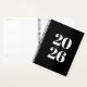 Modern black and white typography planner with weekly and monthly layouts. Great for corporate teams, client gifting, onboarding kits, or conference swag in bulk.