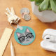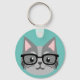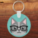 Button keychain illustrated with a cartoon cat. Add your pet's name or yours on the top to personalize. Background colour may be changed. Other cat styles available in the I Love Cats collection.