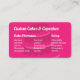 A fun and modern business card in magenta pink with a three tier cake with dripping buttercream icing. Has lots of customizable options where the business owner can edit business name, contact information, website, and also able to have cake and icing flavours menu list on the back.