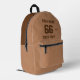 Create your own custom camel Sport Football Style Printed Backpack with Name, Number, Team Name, Slogan and Year. Personalize this simple classic Printed Backpack template with your custom message, name, team name and year. Easily personalize it for a cool sport keepsake. Create your unique personalized gift for coach, boy's birthday, football player, teammates and friends.