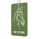 Custom car air freshener with horse silhouette. Add your own text for name, lucky number, funny quote or monogram. Personalized design to refresh your auto with different scents to mask smell and other odours. Unique gift idea for men and women who enjoy horse riding, farm life, horse racing, equestrian sports, horse race betting etc. Create your own for dad, mom, mother, father, uncle, grandpa, brother, son, sister, wife etc. Custom air freshener with customizable template. Make it smell like a fresh new car or the sea. Double sided design. Make your own slogan or saying. Popular horse breeds: Thoroughbred, Morgan, Mustang