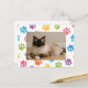 Share a little feline love with this charming customizable postcard, featuring your cat’s photo surrounded by a playful border of colourful paw prints. Perfect for sending sweet messages, thank you notes, or holiday greetings to fellow cat lovers. A fun and heartfelt way to showcase your furry friend!