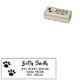 Cat paw print custom return address rubber stamp for a cat mom, kitty owner and all pet lovers. Decorated with a pair of stylized paw prints and paired with a pretty cursive script name with a nice address print. Show your love for cats and embellish your correspondence with this fun little personalized paw print return address rubber stamp.
