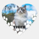 Create a personalized tribute to your feline friend with this heart-shaped sticker featuring a custom photo and space for their name. Perfect for cat lovers, this sticker allows you to upload a favorite picture of your cat and personalize it with their name, making it a unique and heartfelt addition to any collection. Ideal for decorating laptops, journals, phone cases, or scrapbooks, this sticker is a stylish and memorable way to showcase the bond you share with your pet.