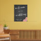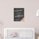 Custom chalkboard wedding reception sign print with pink flowers and customizable text - you can add bride's and groom's name and wedding date. Dimensions of the sign print (poster) are 22 inches by 28 inches.