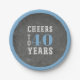 Add a cool custom touch to your milestone birthday celebration with these "cheers" themed party plates in grey chalkboard and blue. Design features "cheers to xx years" in the centre. Example shown for a 40th birthday party; customize with any age.