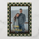 Contemporary classic Christmas holiday season green, white, black and gold foil coloured Buffalo lumberjack plaid tartan pattern. With option to customize or personalize with a photo and (limited) text of your choice. With room to customize or personalize the text on the front, and family name (or individual names) and a customizable season greeting message on the backside of the card.