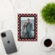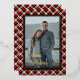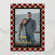 Contemporary classic Christmas holiday season red, white, black and gold foil coloured Buffalo lumberjack plaid tartan pattern. With option to customize or personalize with a photo and (limited) text of your choice. With room to customize or personalize the text on the front, and family name (or individual names) and a customizable season greeting message on the backside of the card.