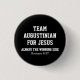Simple but stylish Team Jesus Christian Button with the words TEAM (NAME) FOR JESUS - ALWAYS THE WINNING SIDE. Underneath the Bible reference is Romans 8:37, which states: 'We are more than conquerors through Him who loved us.' The placeholder name is CUSTOMIZABLE so you can personalize with your name or your family name. A great addition to your sportswear collection, and for your family, business or team branding. Ideal for church/Christian events. Also comes in white. Matching gifts available.