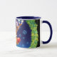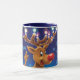 Custom Christmas coffee mug, Rudolph and lights. Blues.