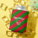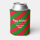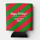 Custom Christmas Holiday can coolers with stripes. Personalized beverage cooler for party guests. Green and red striped design with custom quote, wishes, greeting, name or initial letters on front and back. Double sided xmas print personalized with name or monogram. Elegant script typography. Give away as party favour gift to friends, family, coworkers and more. Also for bottles. Cute accessories for home or office. Change quantity to get the cheap bulk price.