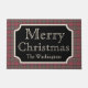 This merry Christmas doormat resembles a Christmas package. Display this classic Merry Christmas doormat rug for the holiday season. Personalize this rug by changing the name. The design is from original art.