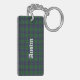 Stylish key chain done in the blue and green Austin clan Scottish tartan plaid pattern. Bold white old world style text, on the front and back, is ready to personalize for yourself or as a great gift idea.