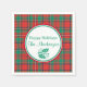Personalized paper napkins with a classic Christmas plaid in bright red and seafoam green, with blue, yellow gold, black, and white accents. Ideal for holiday parties and open houses. Matching paper plates available.