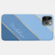Contemporary pastel, light, medium, and dark classic blue-coloured striped cell phone case. With room to customize with a name, monogram, or initials of your choice. Beautiful, modern, and cool cover for the trend-savvy and art-loving hip trendsetter, artsy motif lover who wants to protect their phone from dust and dirt, wear and tear. This design is available in Apple iPhone 6, 7, and 8 Plus, 10 or X, XR, XS, 11, 12,  13 Mini, 14, 15 Plus and Pro Max cellphone cases. Show off your style, look fashionable, and feel stylish with a unique design on a mobile device accessory of your choice.