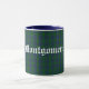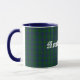 Great looking Scottish clan mug done in the classic blue and green Montgomery / Montgomerie plaid pattern. Old world style text in white reads Montgomery and is customizable to read what you want.