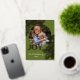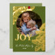 Contemporary classic Christmas holiday season greeting card with golden pine tree needles wreath leaves pattern on a classy dark green background, with real gold foil JOY wish text. With option and room to customize the text, family name and year date, and add a personal photo of your choice on the front, and a customizable season greeting message on the backside of the card.