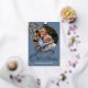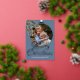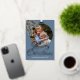 Contemporary classic Christmas holiday season greeting card with white coloured pine tree needles wreath leaves pattern on a classy blue grey background, with real gold foil Merry Christmas wish text. With option and room to customize the text, family name and year date, and add a personal photo of your choice on the front, and a customizable season greeting message on the backside of the card.