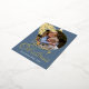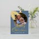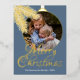 Contemporary classic Christmas holiday season greeting card with white coloured pine tree needles wreath leaves pattern on a classy grey blue background, with real golden foil Merry Christmas wish text. With option and room to customize the text, family name and year date, and add a personal photo of your choice on the front, and a customizable season greeting message on the backside of the card.
