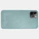 Contemporary light aqua seafoam green coloured faux leather textured cellphone case. With room to customize with a name, monogram, or initials of your choice. Beautiful, modern, and cool cover for the trend-savvy and art-loving hip trendsetter, artsy motif lover who wants to protect their phone from dust and dirt, wear and tear. This design is available in Apple iPhone 6, 7, and 8 Plus, 10 or X, XR, XS, 11, 12, 13 Mini, 14 Plus, and Pro Max cellphone cases. Show off your style, look fashionable, and feel stylish with a unique design on a mobile device accessory of your choice.