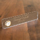 Custom clock desk nameplate shown in the colour brown with text. Customize and change the text to what you need or even change the colour from the colour chart.
