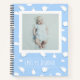 Record memories of your baby's first year with this cute personalised photo notebook with whimsical fluffy clouds and sheep shaped clouds pattern.