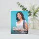 Personalization is at the heart of this announcement. Customize it with your graduate's photo, name, class year, and school name, transforming the postcard into a unique and cherished keepsake. The front of the postcard showcases an elegant and modern script font, adding sophistication and style. Your graduate's photo is prominently displayed, capturing the essence of their hard work and achievements.