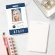 STAFF Photo ID badge with an editable top bottom border colour (click customize, select "NameTagBadge3.2" layer and change colour), editable back background colour and which you can also add your logo. Great for all types of staff at workplaces and events such as meetings, conferences, concerts, shows, exhibitions, etc.