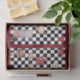 This lovely customizable tissue paper features an Alice in Wonderland theme with a default red border and classic black and white chequerboard pattern. In the centre, young Alice is wearing a long dress and holding a small White Rabbit. Alice is surrounded by surreal tea party items, with tea cups, a teapot, hearts, a mushroom, mad hatter hat, pocket watch, and a myriad of flying playing cards. The default background colour is white, hit the Customize button to change the colour or border if you wish. Makes a great gift or decoration for lovers of checked and chequerboard patterns, Alice in Wonderland, the White Rabbit, classic literature, and quirky fairy tale designs. This design is also available on gift bags, stickers, and other items.