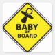 This baby themed sticker is a reference to the popular car decals or suction cup Baby signs. This design features a classic diamond shaped yellow road warning sign. The image is a baby pacifier and the text reads Baby on Board in black print on a yellow and white background. This sticker is customizable, you can change the shape, size or background colour. Just hit the Customize button to make any changes. Great for invitations, newborn baby books, scrap booking projects, baby showers, or just cute baby decorations.
