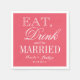 Custom colour background paper napkins for marriage. Eat drink and be married coral pink and white paper wedding napkins. Elegant script typography design for classy wedding party. Stylish handwritten calligraphy combined with chic formal fonts. Trendy template with customizable background colours. Cute vintage slogan for rustic country chic dinner table. Also great for rehearsal dinners, cocktail hour, bbq, reception etc. Personalized with name of bride and groom plus date of marriage. Beautiful formal wedding decor.