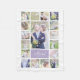 Photo collage blanket with 17 photos arranged in a grid layout featuring your family name in an elegant script. This versatile blanket design also has editable colours. You can change the background colour by clicking "customize", select "18BoxPhotoGrida" layer and change its colour from white to whatever you want and you can also change the colour of the rectangle behind your family's name by clicking "customize", select "rectangle" and change the fill colour. This blanket is perfect for wedding keepsake and anniversary gifts.