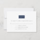 Sleek, chic and modern, these ultra modern wedding response cards feature "RSVP" set on a rectangular element that can be customized with the click of a button to match your wedding colours. Add your desired RSVP date, accept and decline wording, and a field for number attending in charcoal grey modern sans serif lettering, then adjust the colour to your preference using the easy instructions below. Cards reverse to an optional modern Greek key pattern. Shown in classic navy blue and white.