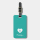 This monogram modern luggage tag features a modern script for your name and a white heart against an editable background colour on the front (click edit to change).