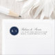 Customize these simple and elegant monogram return address labels to match your wedding colours! Simply add your initials, names and address using the template fields provided, then click Customize to change colours. Shown in classic, crisp navy blue and white. A circular monogram badge at the left shows off your colours beautifully, while block and script lettering in dark grey displays your return address in timeless style.