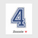 Number four sticker. Sports college font, any custom colour. You can change the colour of the number with the customization tool. The complete alphabet and numbers 0-9 are available.