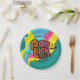 Super groovy pot luck dinner party or other bring-a-dish food event paper plates featuring bold "pot luck party" text and personalized with your choice of colour scheme, and text on the top and bottom.