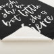 Stylish literary blanket featuring white brush script of the quote "though she be but little she is fierce" from A Midsummer Night's Dream by William Shakespeare against an editable background colour (click customize to change background).