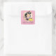 Cute vintage, retro girl with hair bow and pink dress sewing a handkerchief on these 'handmade with love' gift tag stickers, product or packaging labels for sewing crafts, seamstress or alterations sewing service. Looks great with lots of background colours which you can change in the 'customize' section, then under 'edit', then 'background'. You can resize, move, rotate or remove the image to get the look you want.