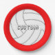 Custom Colour & Text Volleyball Paper Party Plates: Totally customizable paper plates for volleyball parties and special events. Personalize them by typing any text in the custom text box, and then click the [Customize] button and use the colour picker tool to select your favourite background colour (currently set on red). It's the perfect table decoration for volleyball player parties, team banquets, or other celebrations!