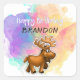 This is a super cute colourful sticker for a birthday! It has a cute moose cartoon character and can be customized and personalized!