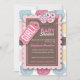 A custom baby shower invite for girl featuring owl and string and label and large flower in many colours design